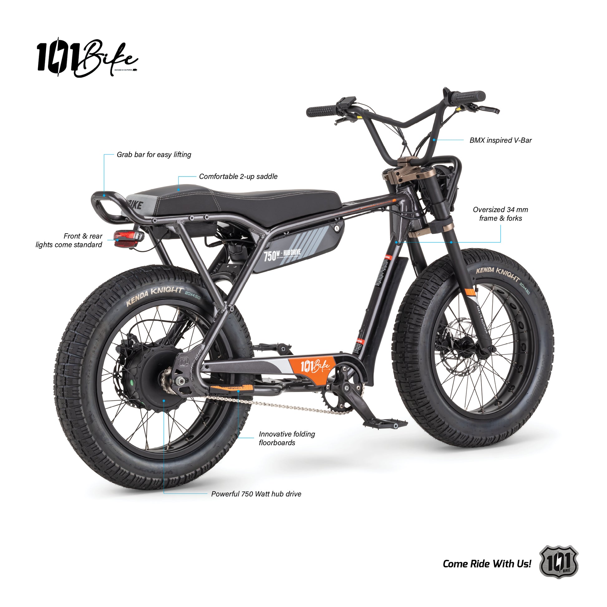 Born in Cardiff by the Sea, next to California’s iconic Highway 101, the all-new 101 Bike. A pedal assist, electric bike with design and sports lineage from its Moto and BMX founders.
